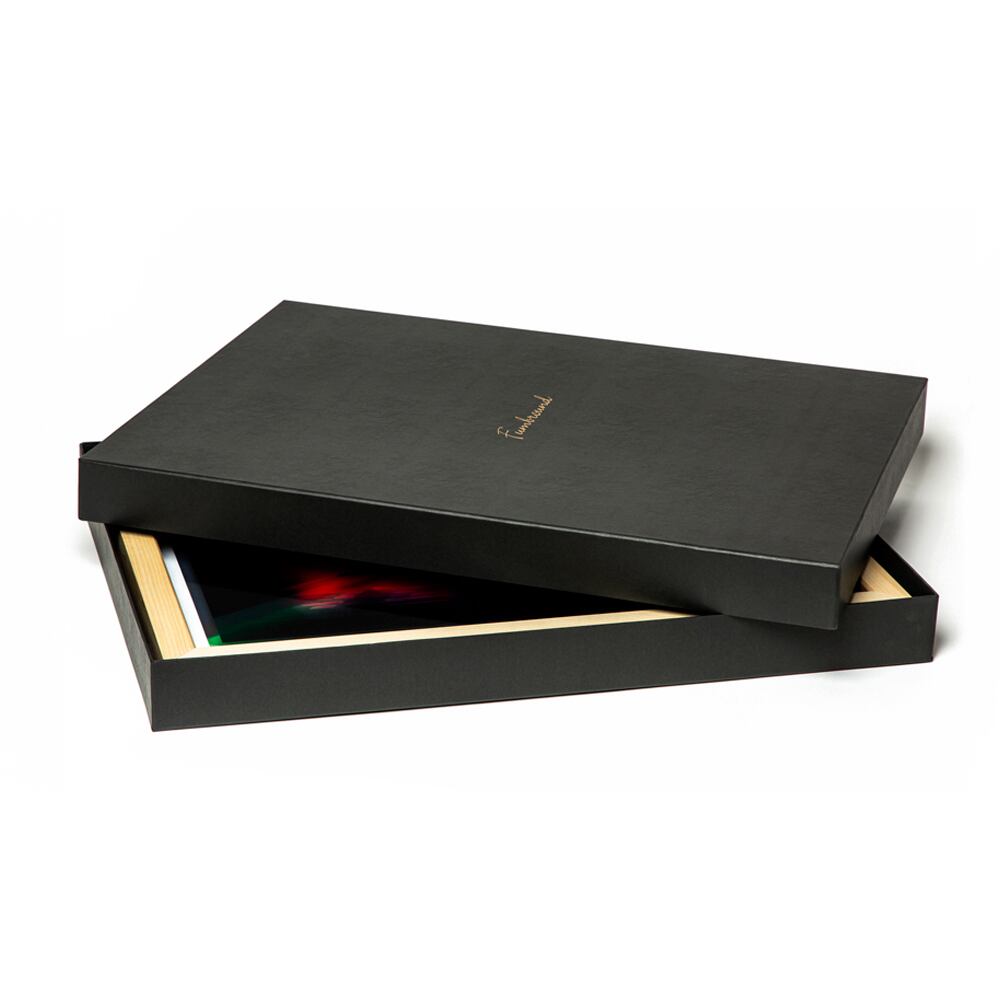 ガラスにUV印刷を施し、二層目のキャンバス生地にインクジェット印刷をすることで、平面の中にも奥行きや質感を感じる作品になります。