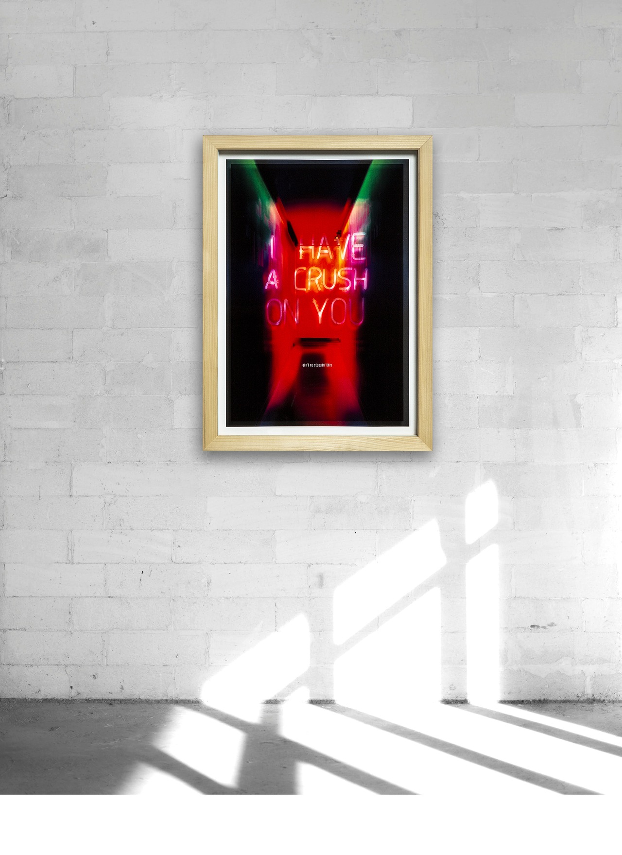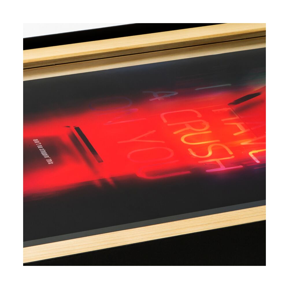 ガラスにUV印刷を施し、二層目のキャンバス生地にインクジェット印刷をすることで、平面の中にも奥行きや質感を感じる作品になります。